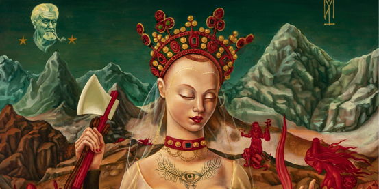 Hutter is a German painter, illustrator and author who studied at the University of Applied Sciences in Koln under Professor Marx, a painter himself who produced a number of challenging expressionist works. Michael has had many solo exhibitions in the last thirty years, in addition to providing illustrations for fantasy books, heavy metal albums and other media, and once said of his paintings: “In my opinion truth is somehow an illusion anyway. I mix that with my obsession, passions, desires and fears and choke what happens in the abyss of my personality back on the surface.” (check out this interview on the Grey Dog Tales website)